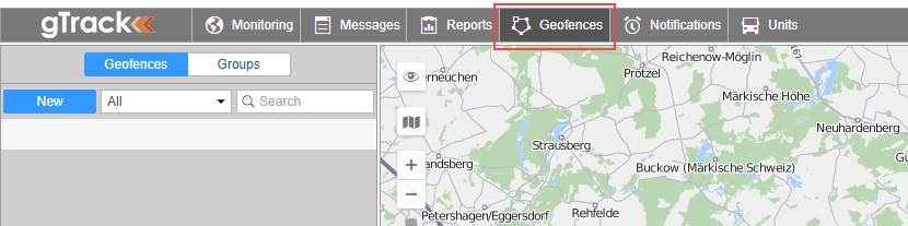 Geofences are created in the places of interest which should get under control. To create a geofence, go to the Geofences panel and click New.