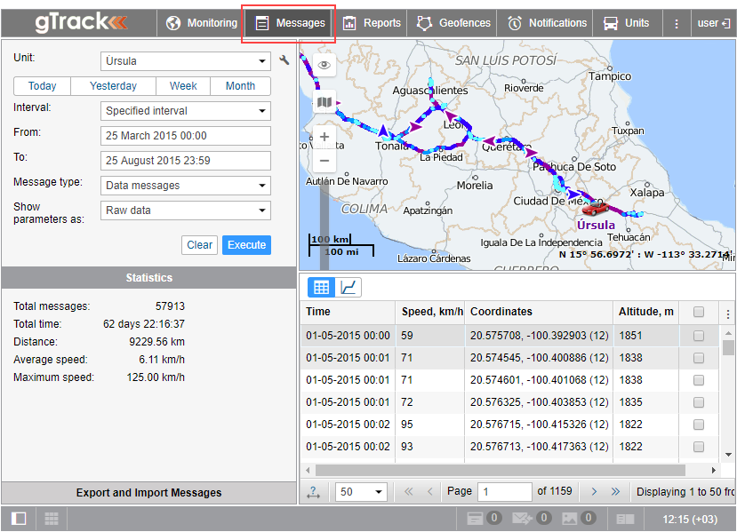 The most reliable way to check the unit performance is to view its messages. To switch to the Messages panel, click on the Messages tab in the main menu. Then, select the interval for which you want to receive messages, and press Execute.