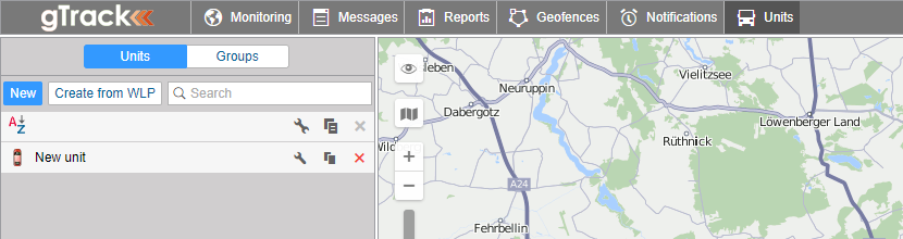 At the end, click OK. The newly created unit appears in the list. Click on the unit name to locate it on the map.