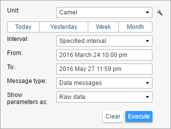 To quickly find a necessary message, use a special filter. Data messages (with parameters displayed as raw data) can be filtered by parameter names and parameter values, SMS messages and registered events — by message/event text, sent commands — by values of additional parameters, log — by the description of the action. The filter is disabled for data messages with the parameters shown as sensor values.
